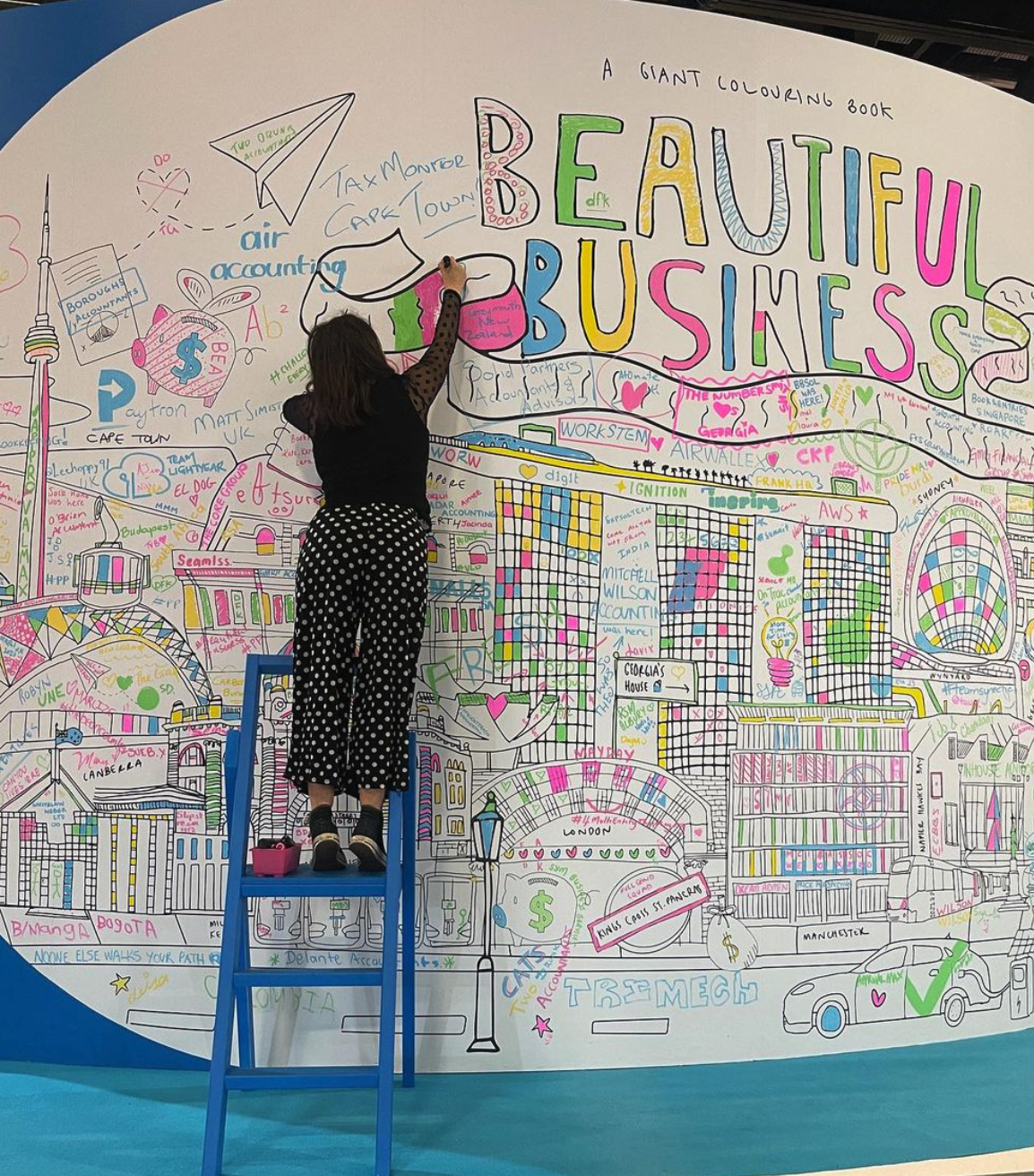Work togetherSpeaking & PartnershipsGiant Colouring BookMuralsDrawing WorkshopsLive Event Illustration